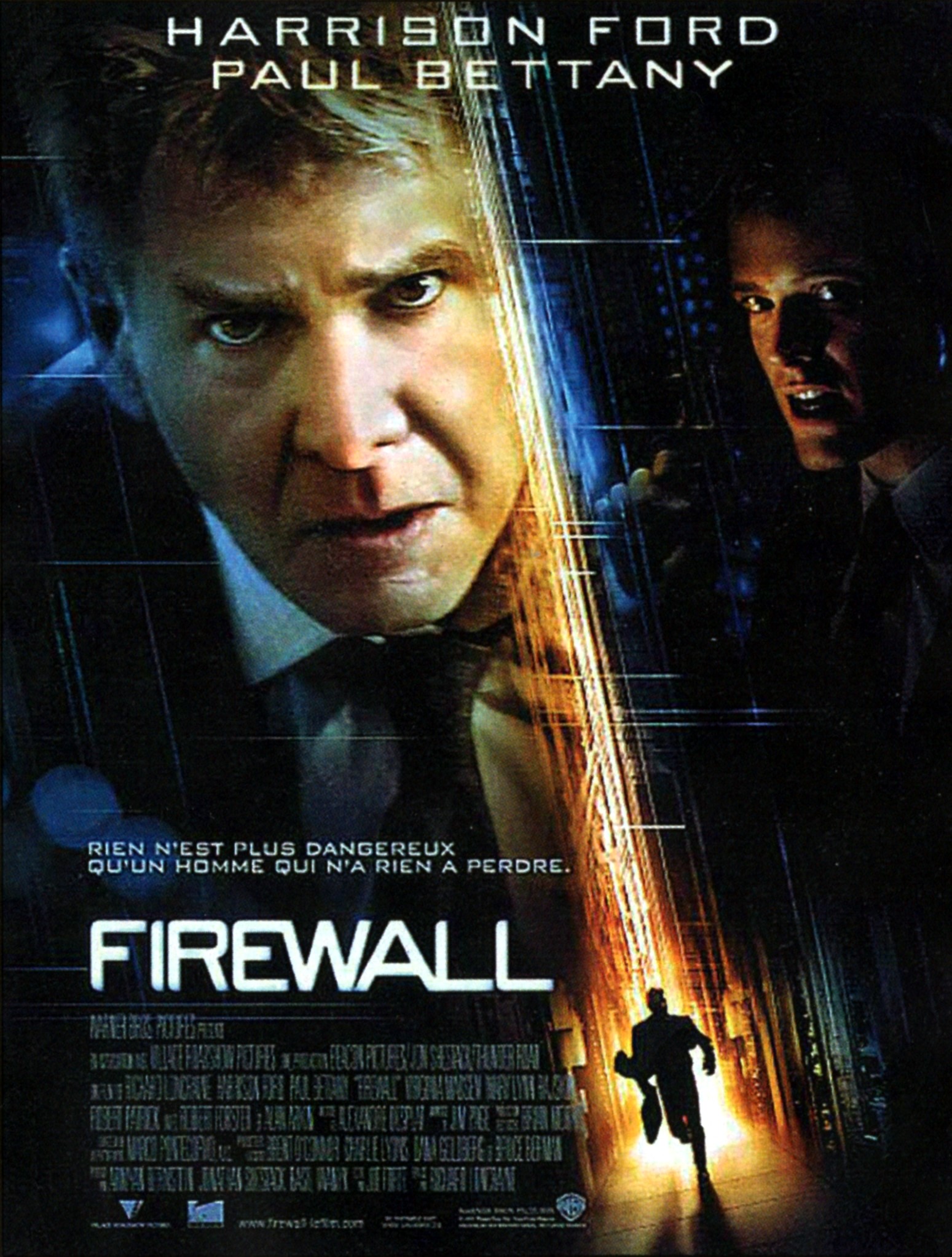 Synopsis : Jack Stanfield est l’un des meilleurs experts en sécurité informatique des États-Unis. Cadre supérieur d’une grande banque de Seattle, il a mis au point un pare-feu ultra sophistiqué, qu’aucun hacker n’a jamais réussi à pénétrer. Depuis plusieurs mois, sa famille est espionnée à son insu par un chef de bande aussi ingénieux que déterminé. L’homme qui se fait appeler Bill Cox connaît tout de Jack, sa femme Beth et leurs deux enfants. Et il est maintenant prêt à récolter le fruit de son labeur. À la tête de six hommes armés, le gangster force la porte des Stanfield et prend en otages Beth et les enfants. Pour sauver sa famille d’une mort certaine, Jack va devoir neutraliser son propre firewall, détourner 100 millions de dollars et les virer avant 24 heures sur le compte off-shore de Cox…