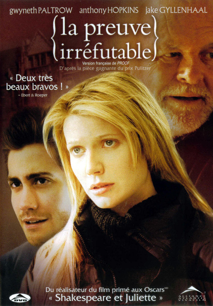 Synopsis : La fille d’un mathématicien de génie doit surmonter le décès de son père qui souffrait également d’instabilité mentale. Elle tente d’y parvenir avec l’aide d’un ancien élève de son père qui vient chercher des preuves de son génie alors que sa sœur, qu’elle n’a pas vue depuis longtemps, débarque pour mettre de l’ordre dans les affaires du paternel.