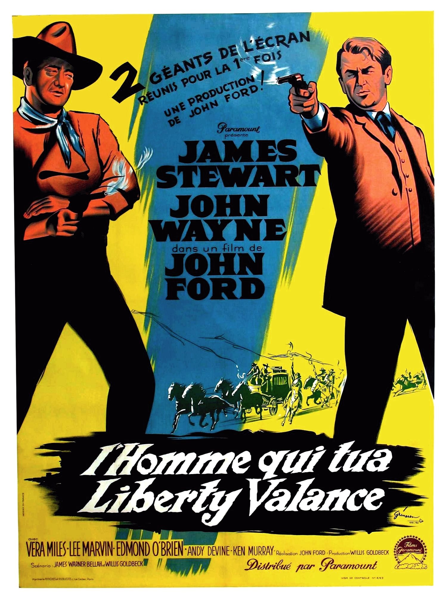 Avec : John Wayne, James Stewart, Vera Miles, Lee Marvin, Edmond O’Brien, Andy Devine, Ken Murray, John Carradine, Jeanette Nolan