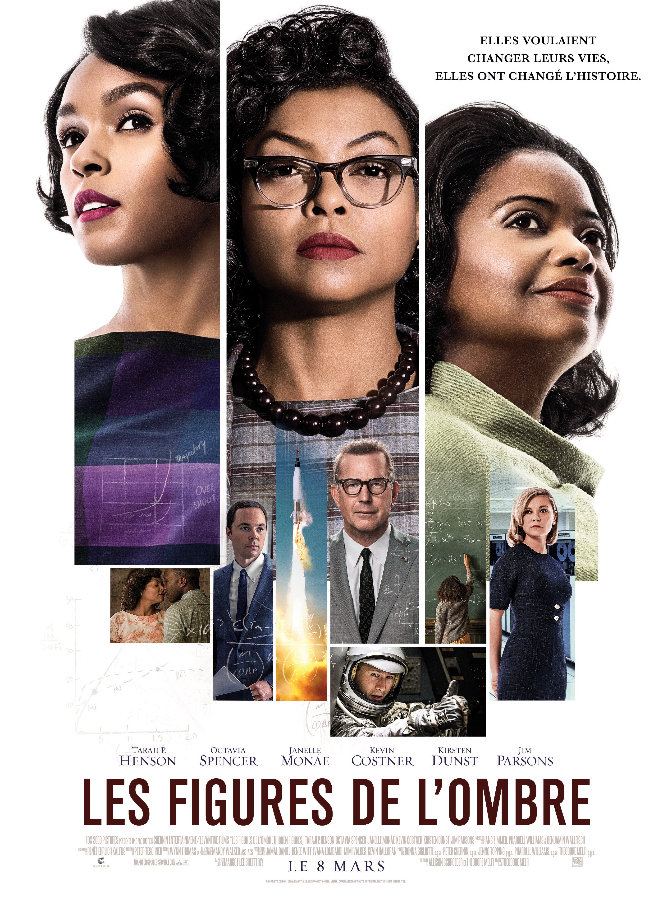Avec : Taraji P. Henson, Octavia Spencer, Janelle Monáe, Kevin Costner, Kirsten Dunst, Jim Parsons, Mahershala Ali, Glen Powell, Ariana Neal