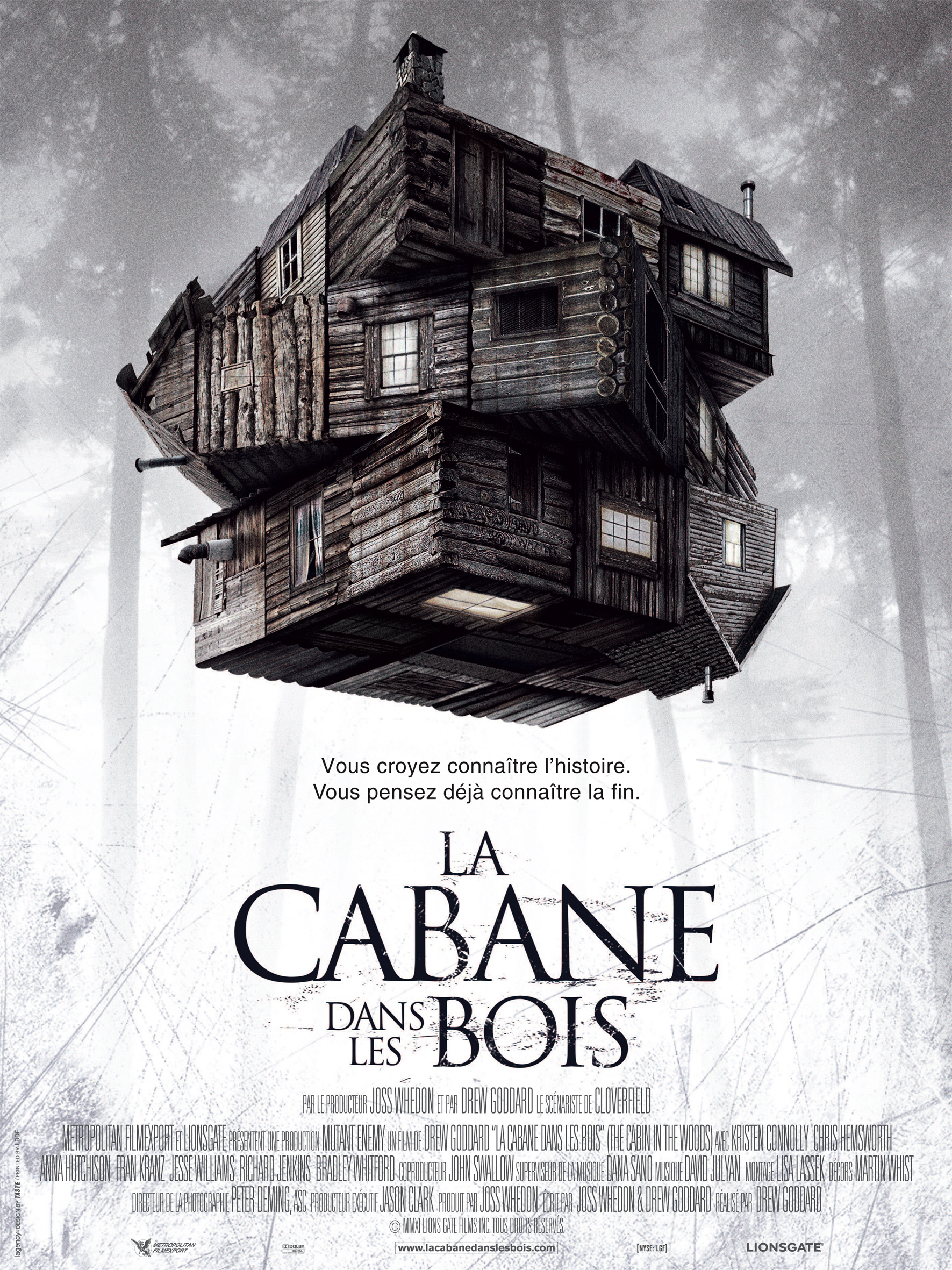 Synopsis : Cinq amis partent passer le week-end dans une cabane perdue au fond des bois. Ils n’ont aucune idée du cauchemar qui les y attend, ni de ce que cache vraiment la cabane dans les bois? Signé par deux maîtres de l’horreur, Joss Whedon et Drew Goddard, voici un film qui réinvente et repousse toutes les conventions du genre. Attendez-vous à découvrir un nouveau niveau de terreur ?