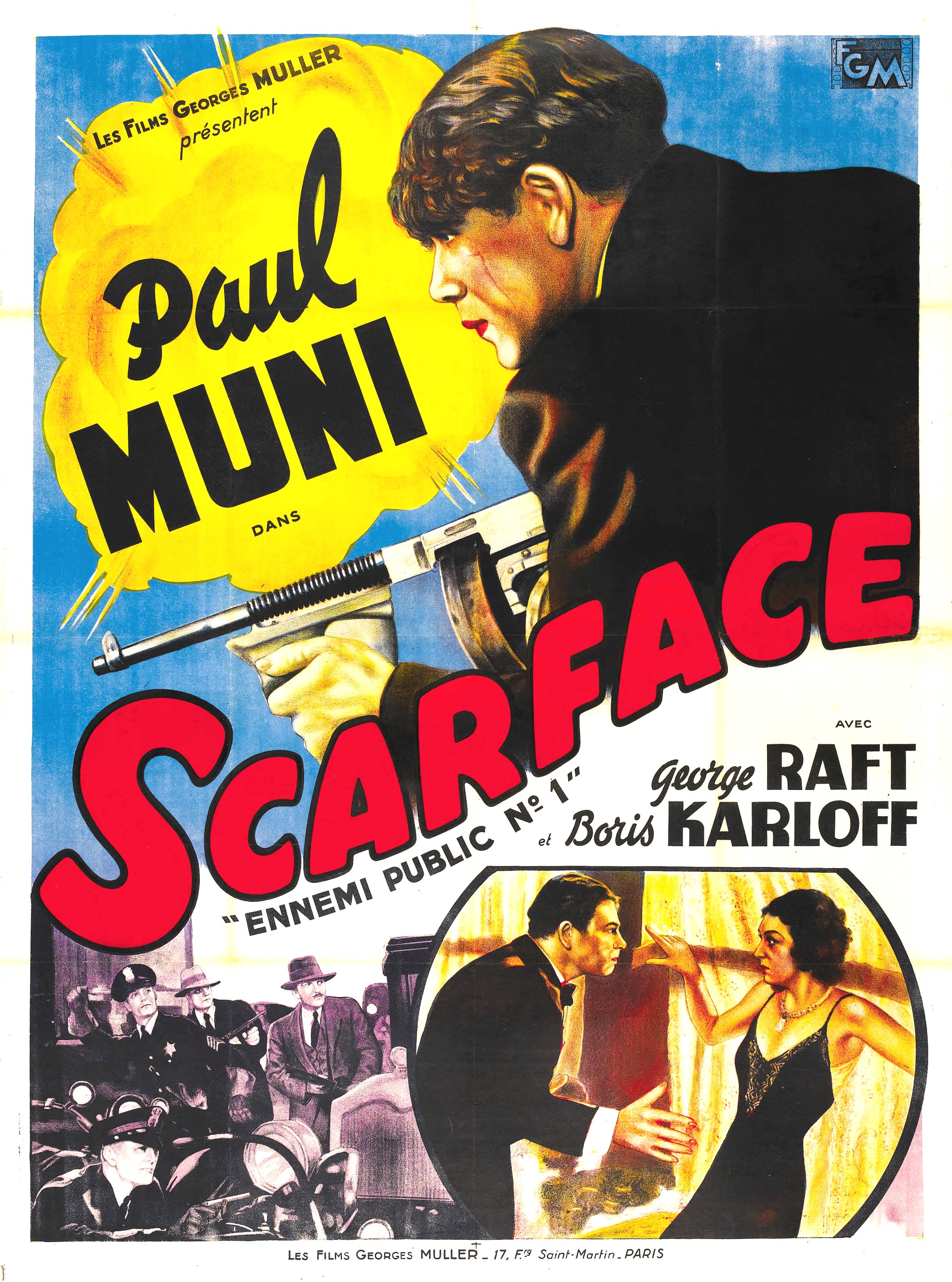 Avec : Paul Muni, Ann Dvorak, Karen Morley, Osgood Perkins, C. Henry Gordon, George Raft, Vince Barnett, Boris Karloff, Purnell Pratt