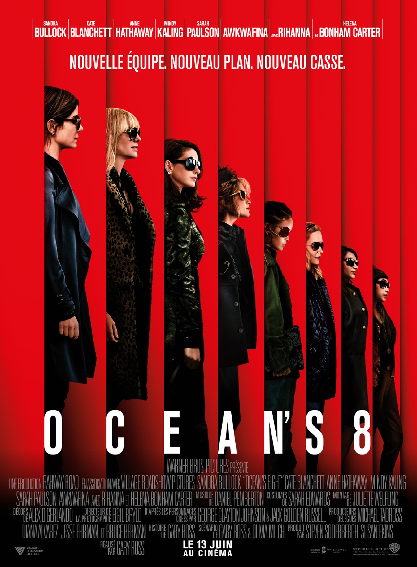 Avec : Sandra Bullock, Cate Blanchett, Anne Hathaway, Sarah Paulson, Awkwafina, Helena Bonham Carter, Mindy Kaling, Rihanna, Richard Armitage