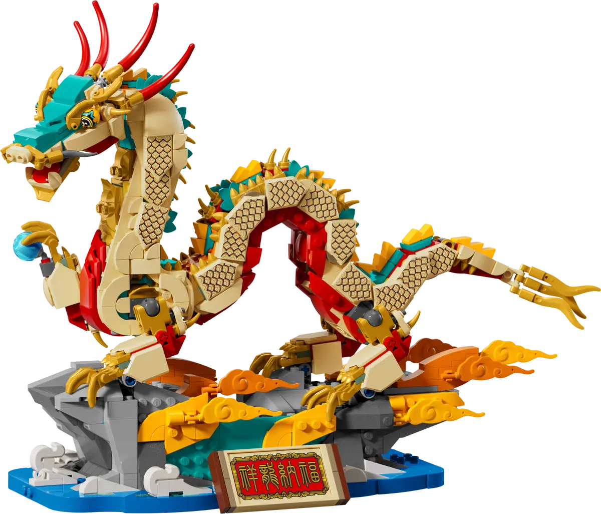 - Le dragon de bon augure LEGO® Fête du Printemps – Célébrez la Fête du Printemps avec ce dragon de bon augure coloré en briques, conçu pour les enfants dès 10 ans