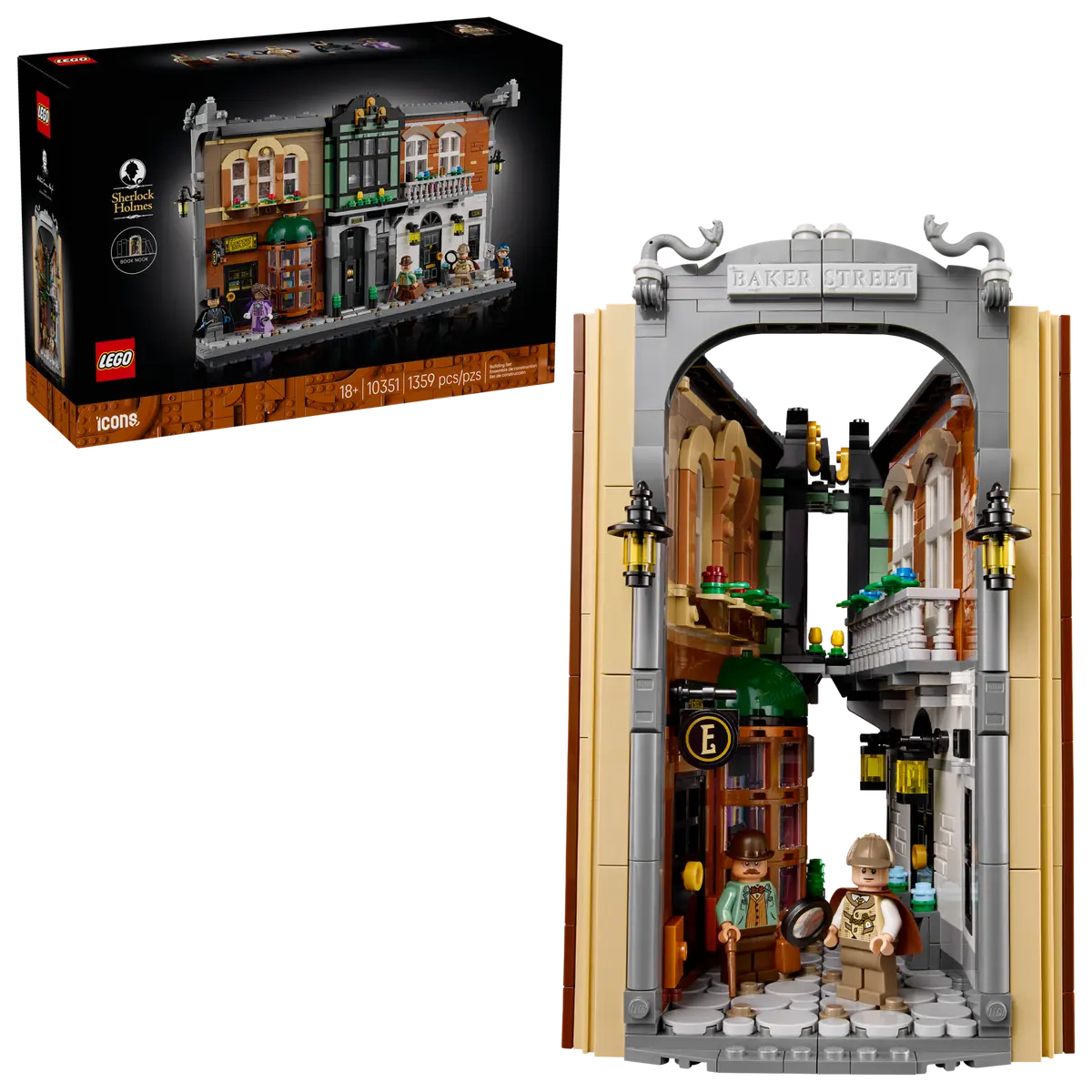 Recréez les mystères du Londres victorien avec le set Book Nook : Sherlock Holmes LEGO® Icons (10351). Parfait pour les fans de romans policiers classiques, il peut être exposé comme un Book Nook unique ou comme une décoration captivante incluant des personnages mythiques, dont le perspicace Sherlock Holmes, son fidèle compagnon le Dr Watson, l’énigmatique Irene Adler, le fourbe professeur Moriarty et la nouvelle venue de Baker Street, Paige.